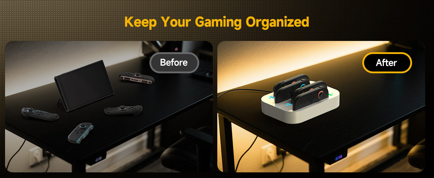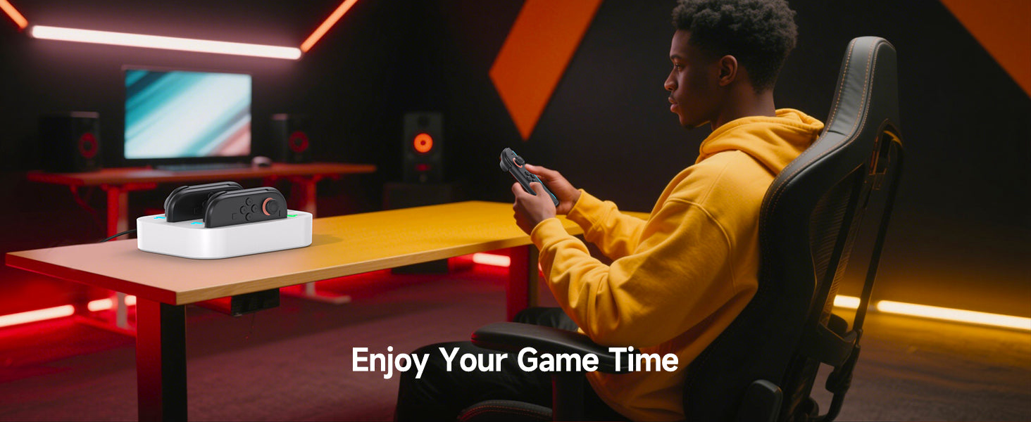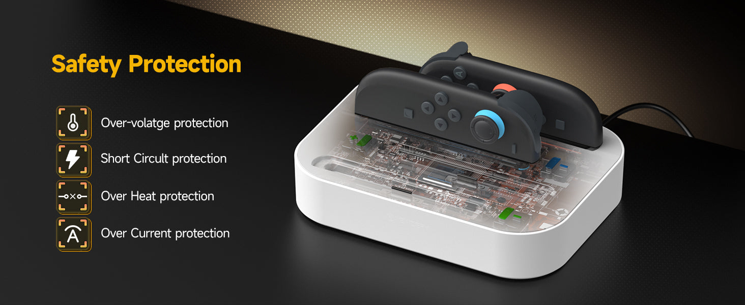 - Safe Charging & Perfect Gift:This Joy Con charger features built-in protection against overcharge, overload, and overheating to keep your controllers safe. A thoughtful, practical surprise for kids, friends, or gaming families.
