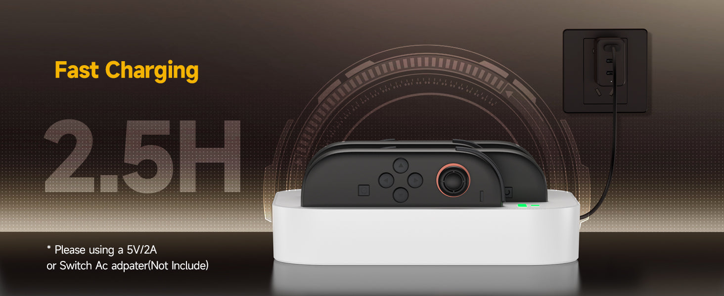 - 2.5 Hours Quick Charging:No more waiting,charge each Joy Con fully in just 2.5 hours with the included USB-C cable. Get everyone back in the game faster.