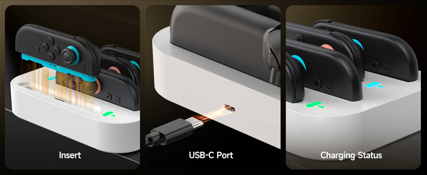- Stable Direct-Plug Design:Plug-in design,no magnetic detachment issues!This switch charging station uses a secure plug-in system for fast, reliable charging—just insert and go.