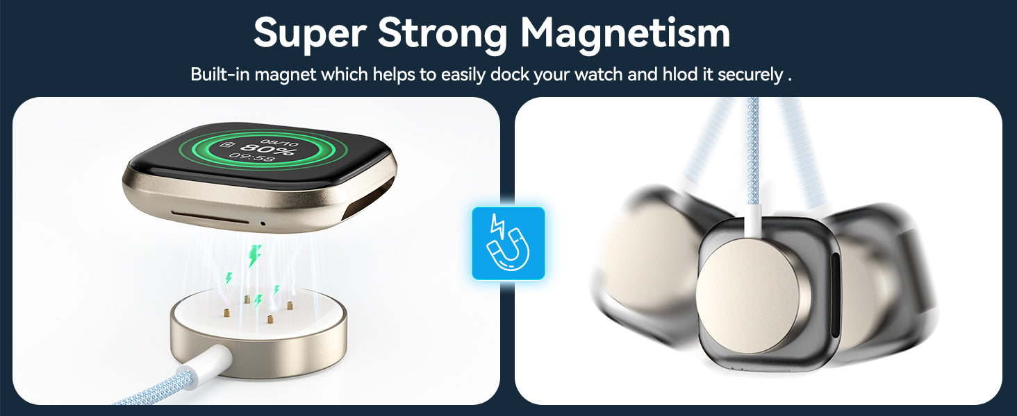 The fitbit sense charger stand built-in magnet module, makes your watch easily automatically align, keep securely in place for optimal charging, easily to charge. A great replacement for your fitbit watch charger.