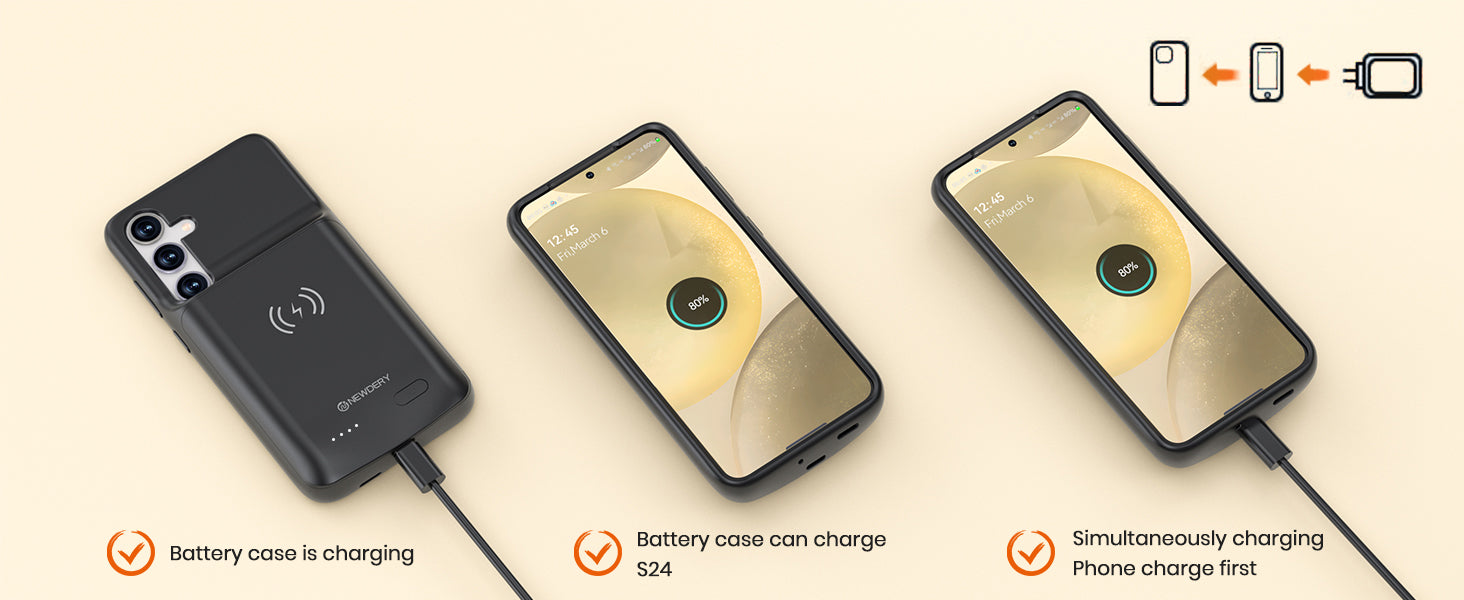 4. NOTE: The battery case CAN NOT fast charge S24, and your phone can't be fast charged by the fast charger when the phone is in the case.