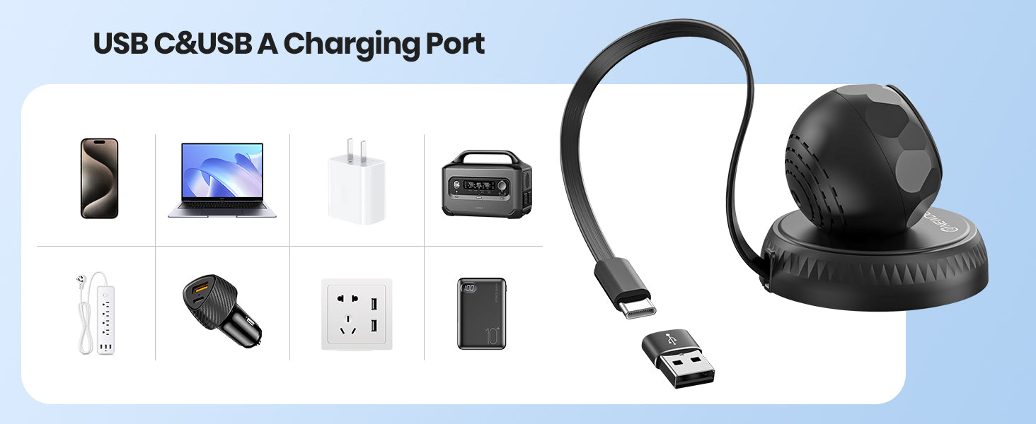 Comes with USB A adapter,with built-in USB C cable design,suitable for 2 types of ports in daily life.you can plug into wall adapter,laptop,power bank or other power sources with USB-A or USB-C charging ports to charge the watch.whether it is home, office or business trip, travel, anywhere, anytime to solve the charging problem.A great accessories in our life.