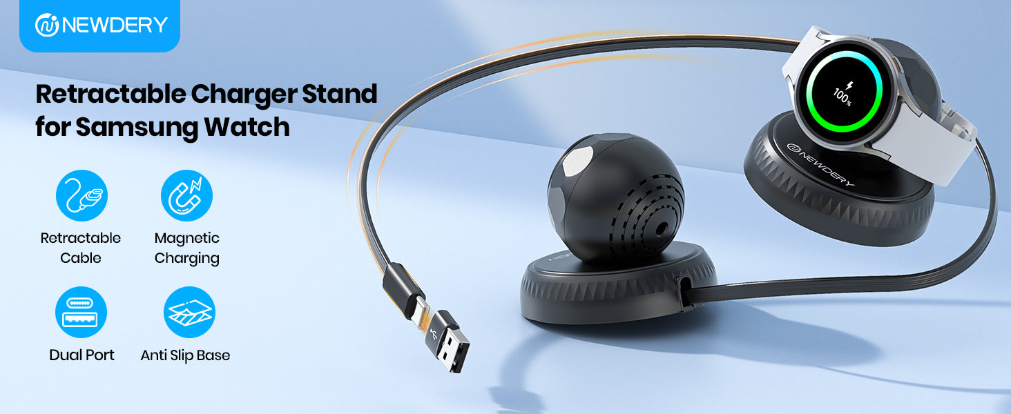 No need to carry extra cable anymore.Newdery for samsung galaxy watch charger has built-in retractable USB C cable,can be adjustable length from 0.6ft to 2.8ft,and gently pull cable ends to retract.Easy to place in your handbag, laptop bag, or backpack. Cut down on clutter and save some space whenever and wherever.