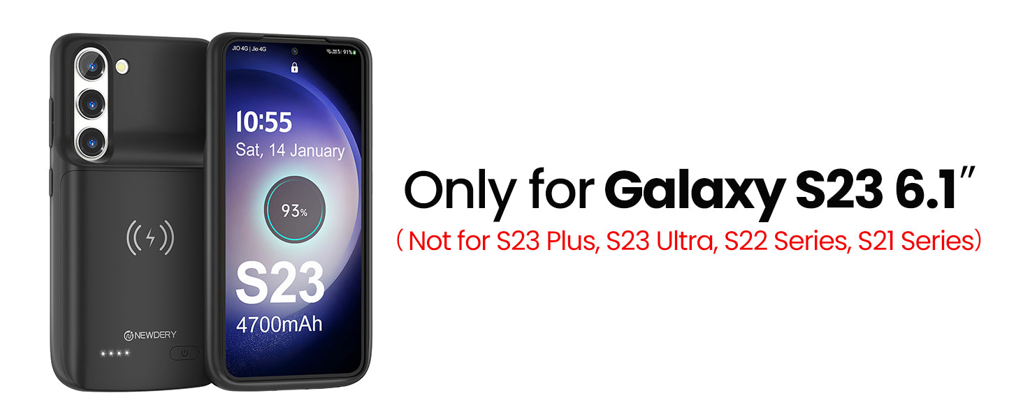 NEWDERY Battery Case for Samsung Galaxy S23, Qi Wireless Charging, Fast Charging, Sync Data Supported, 4700mAh Ultra Slim Portable Rechargeable Charger Case for S23 6.1"(2023 Newest) Black