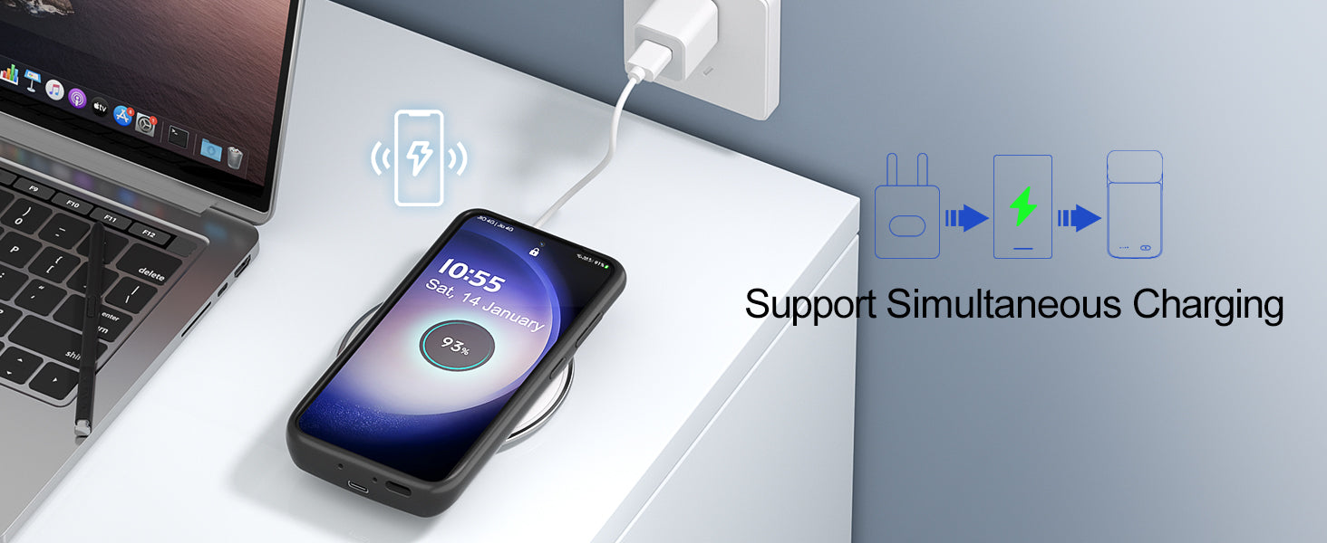 4.NOTE: The battery case CAN NOT fast charge S23, and your phone can't be fast charged by the fast charger when the phone is in the case.