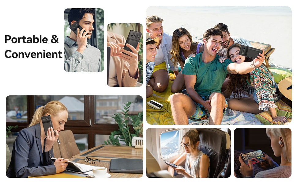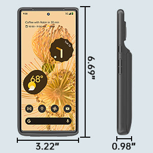 Built-in powerful 10000mAh Li-polymer rechargeable battery case provides additional 130% power to your Pixel 6 Pro. Battery case can charge your phone 1.3 times, keep you phone away from low battery.