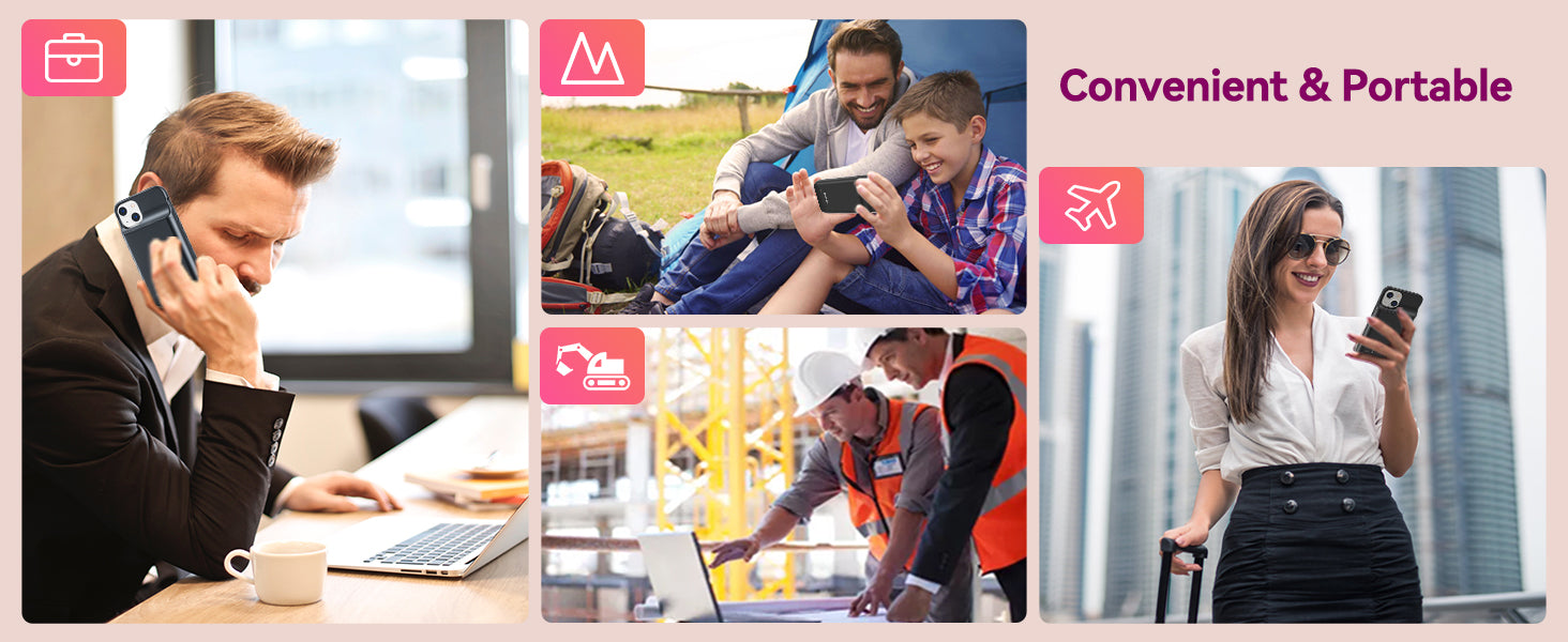The charging case for iPhone 14 Pro Max / 14 Plus built-in 5000mAh capacity, adds 110% power to your phone. Slim and portable design allows you put it in your pocket or handbag. Power your iPhone 14 Pro Max / 14 Plus anytime anywhere.