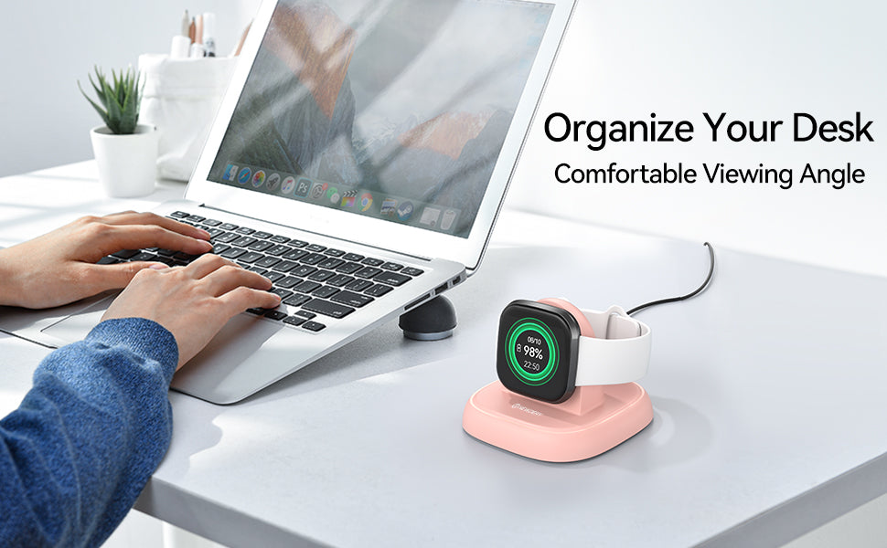 Base with anti-slip mat and 85g weight design make the fitbit versa 3 charger has good weight on the stand to keep charging, it will not moving during daily use. Compact and portable design allows you convenient to carry around for daily or travel use.