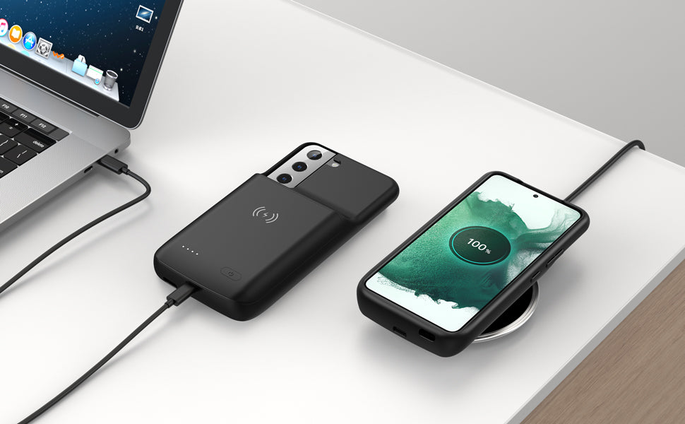 ONLY for Samsung Galaxy S22 5G-6.1"! You can charge your phone and s22 battery case simultaneously via Qi wireless charger pad or cable. *NOTICE*: NOT for S22 Plus or S22 Ultra!