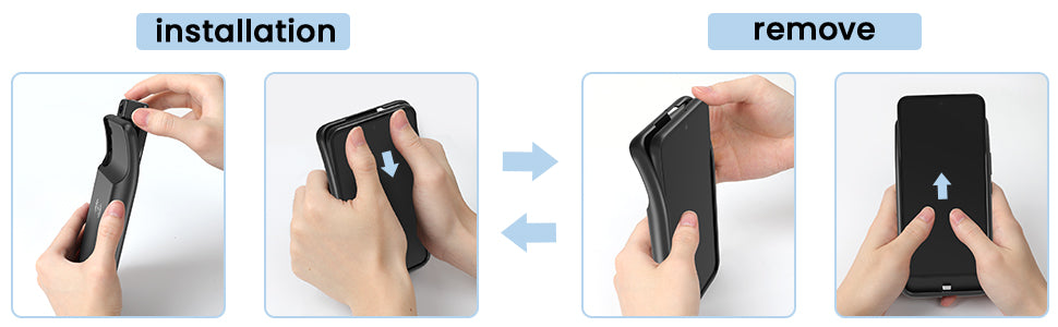 With premium Li-polymer batteries, NEWDERY S22 battery case can be fast charged by 18W QC adapter, please use the USB-A to USB-C charging cable and 5V/3A QC adapter. NOTE: The battery case can't fast charge the phone.