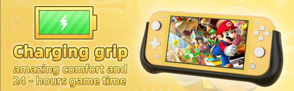 Battery case for Nintendo Switch Lite built-in 10400 mAh rechargeable Li-polymer battery pack, it can extend the game playing time up to 10 hours (max). The super safety protection design will prevent short-circuiting, over-current, over-voltage and overheating.